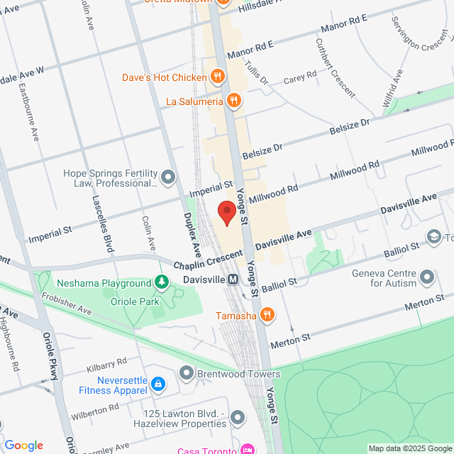 Direct access from Davisville subway station, Yonge street entrance, parking lot across the street